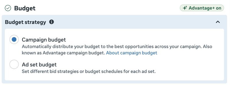 CBO, also known as Advantage+ campaign budget in Ads Manager, sets your budget at the campaign level. Meta's algorithm decides how to distribute that budget across your ad sets based on predicted performance.