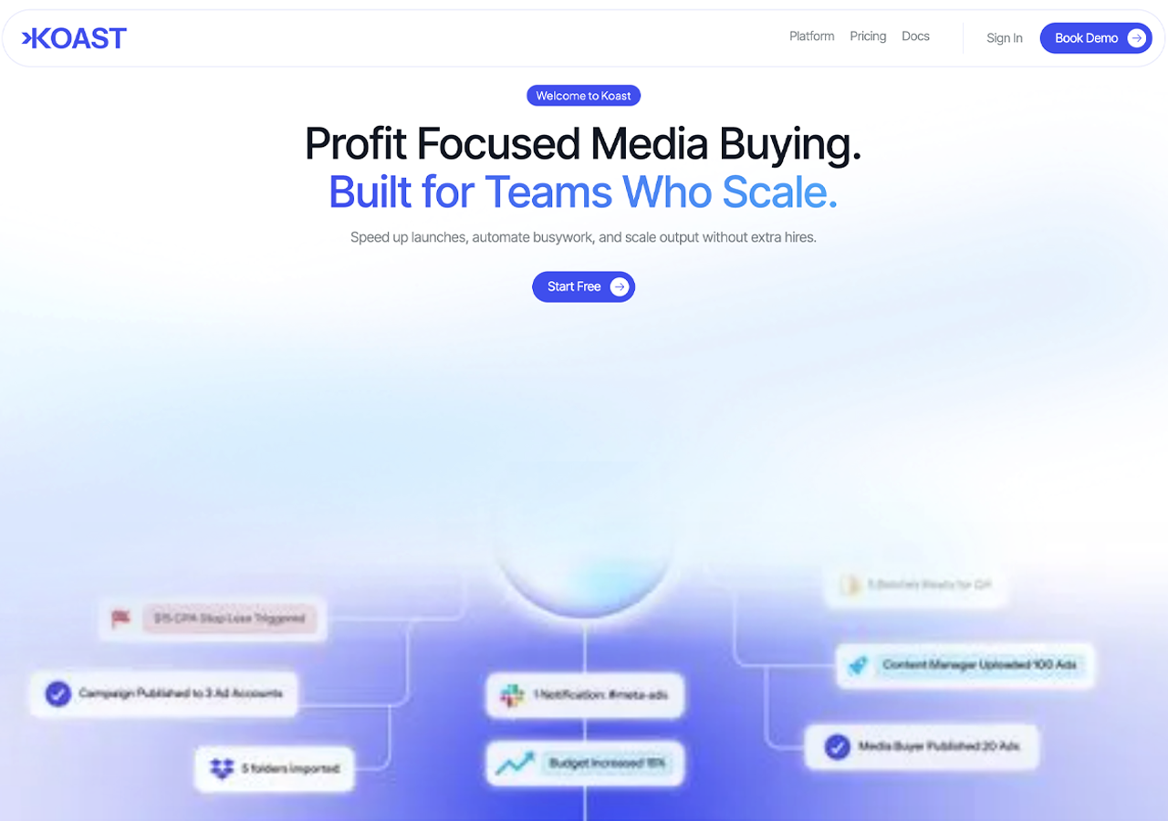 Overview: Koast focuses on stop-loss automation and budget management. The bulk launching feature exists but with limitations. The 5-minute budget check frequency is faster than most competitors if that's your priority.